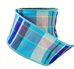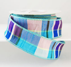 Wired Blue, Purple, Green and Tan Striped Dupioni Ribbon